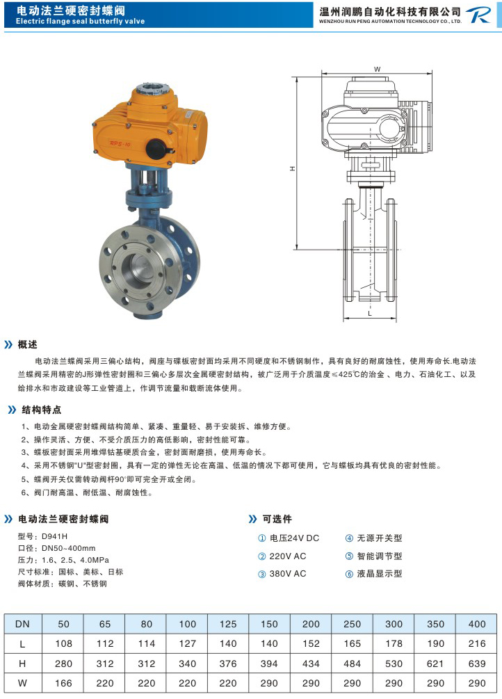 电动法兰硬密封蝶阀